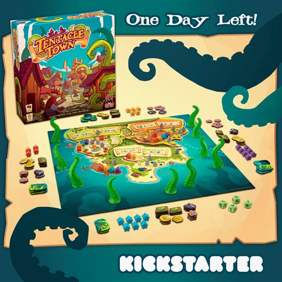 | Only 24 hours left to back Tentacle Town from our friends at Monster Fight Club. Build the town, make clever trades, and hunt tentacles to earn fame and become the town’s first mayor. Tentacle Town is easy to learn with strategic depth and fun twists that will bring this family-friendly game back to the table again and again. Sharpen your harpoons and take aim for Tentacle Town on Kickstarter Now! |